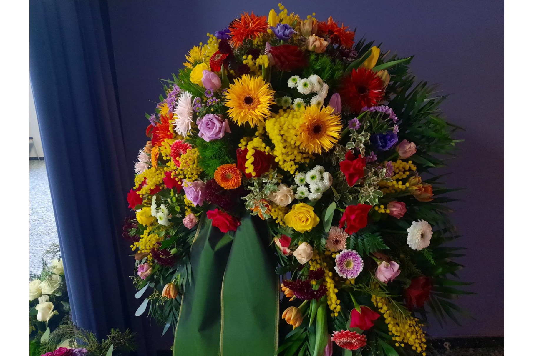 Trauerkranz mit bunten Blumen (variiert immer nach Verfügbarkeit), erhältlich ab 200€.