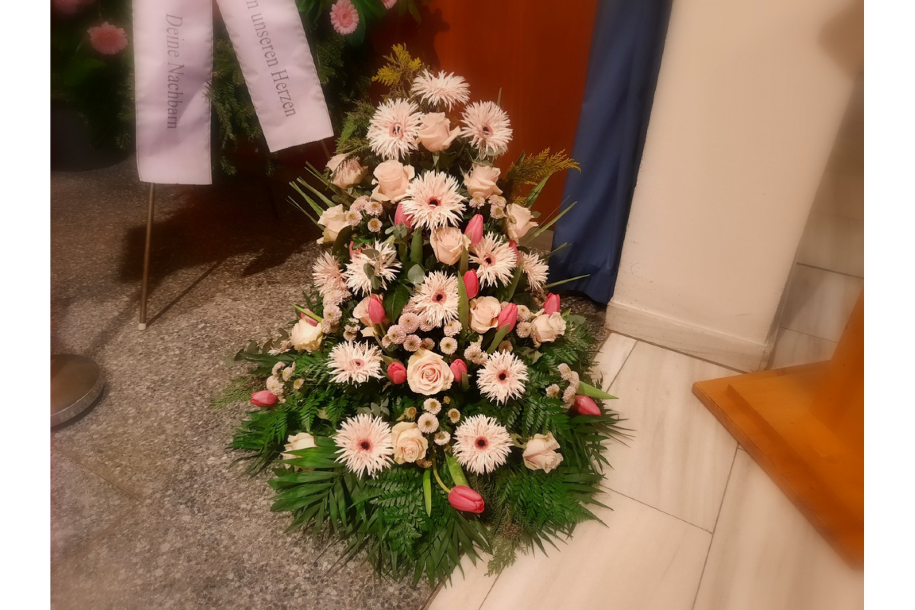 Gesteck in Rosa gehalten mit Saisonalen Blumen, ab 80€.
